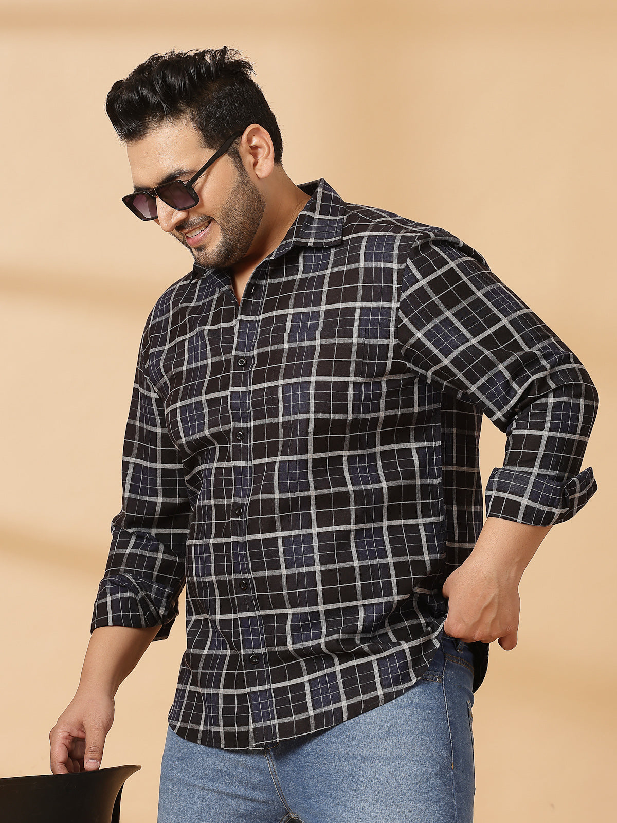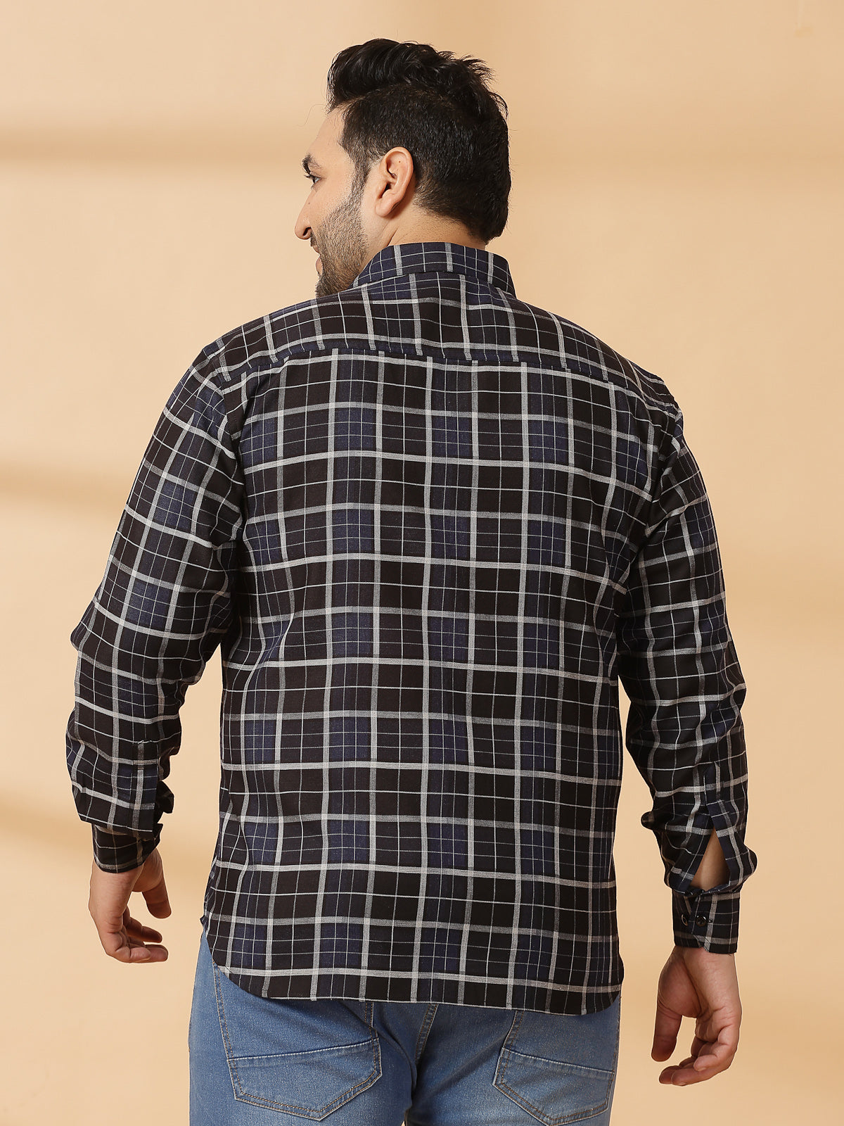 Black, Navy blue & White opaque casual shirt for menSpread collarButton placketPatch pocketLong sleevesCurved hemline