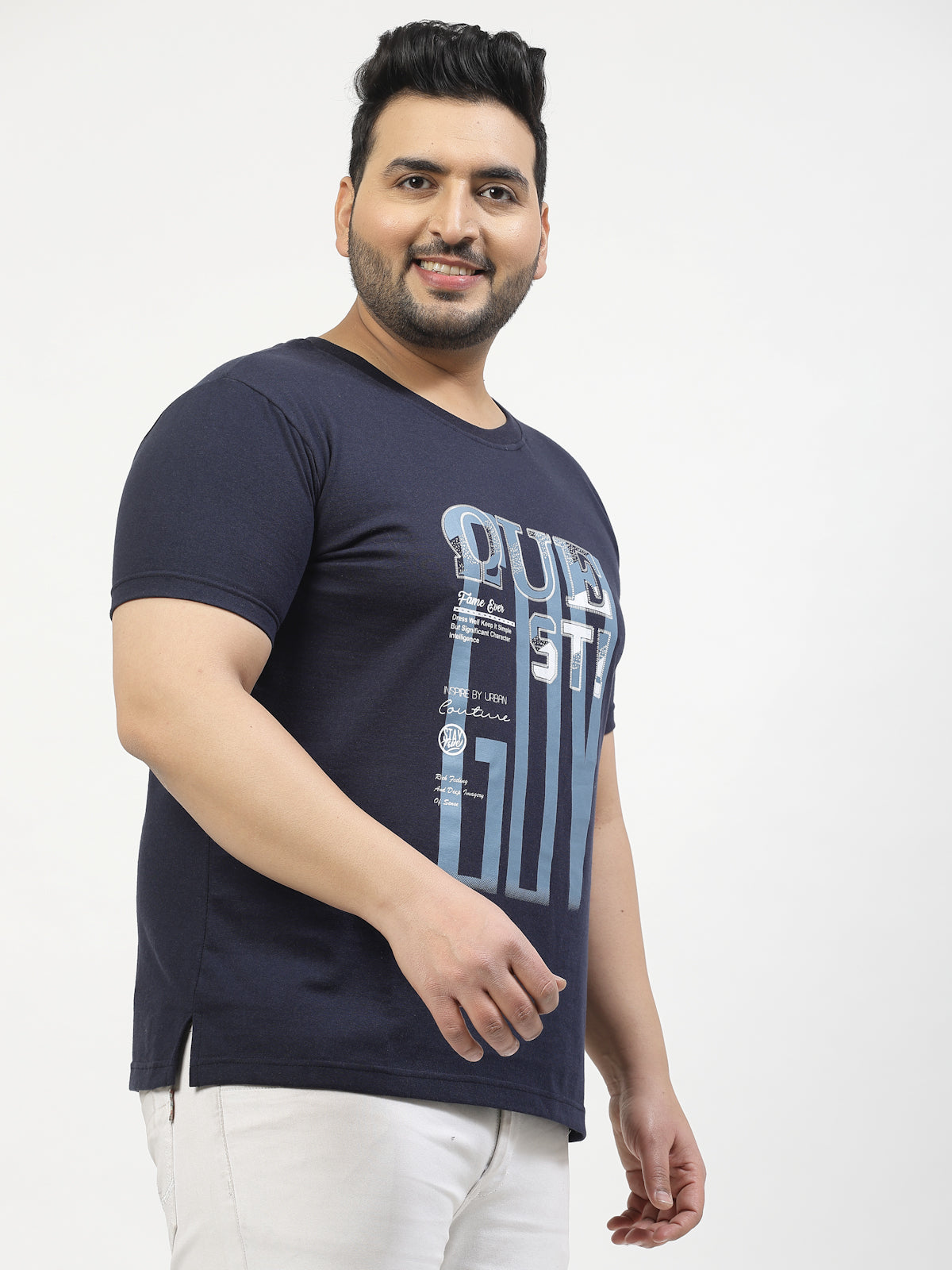 Plus Size Typography Printed Round Neck Short Sleeves Cotton T-shirt