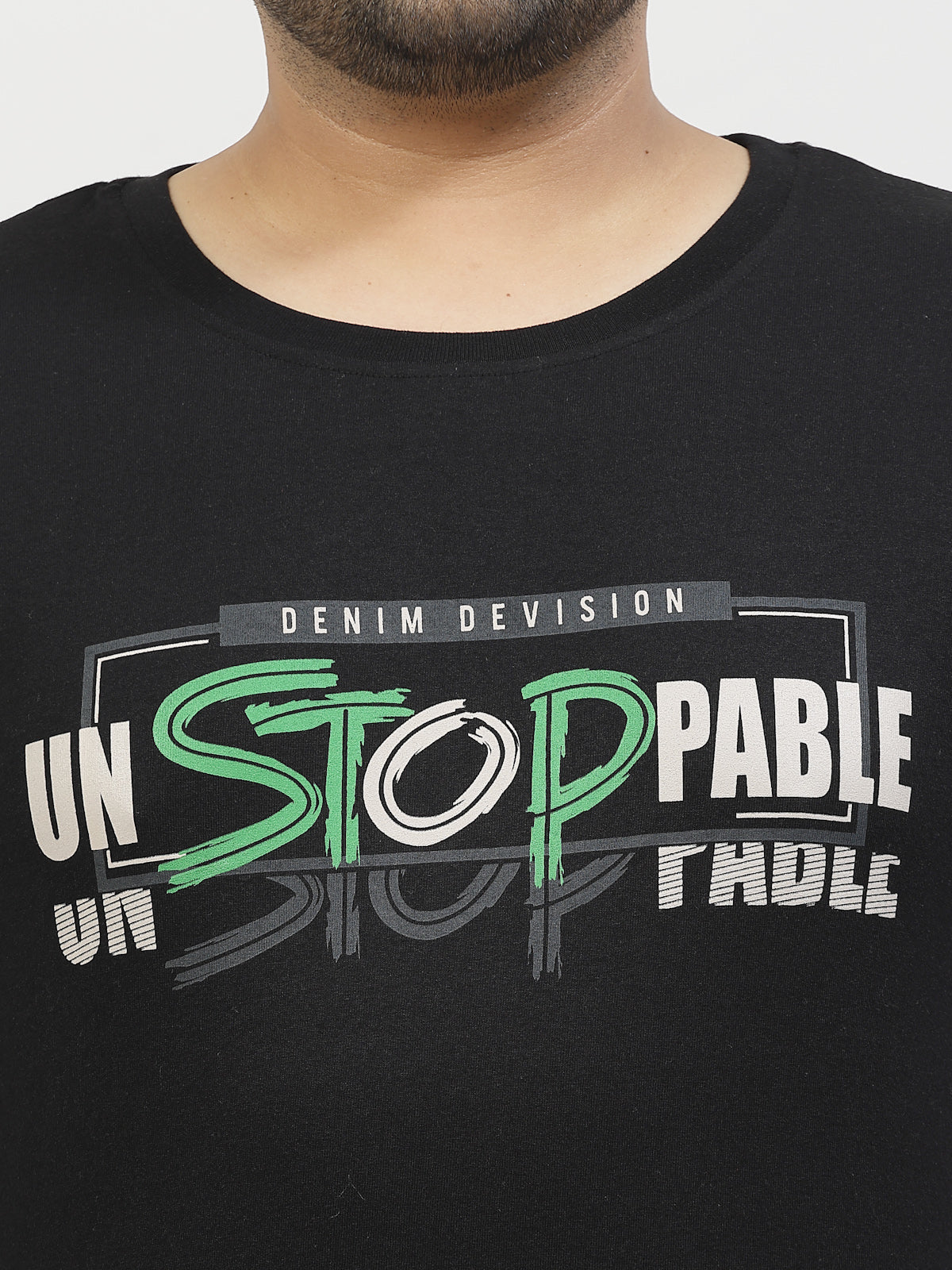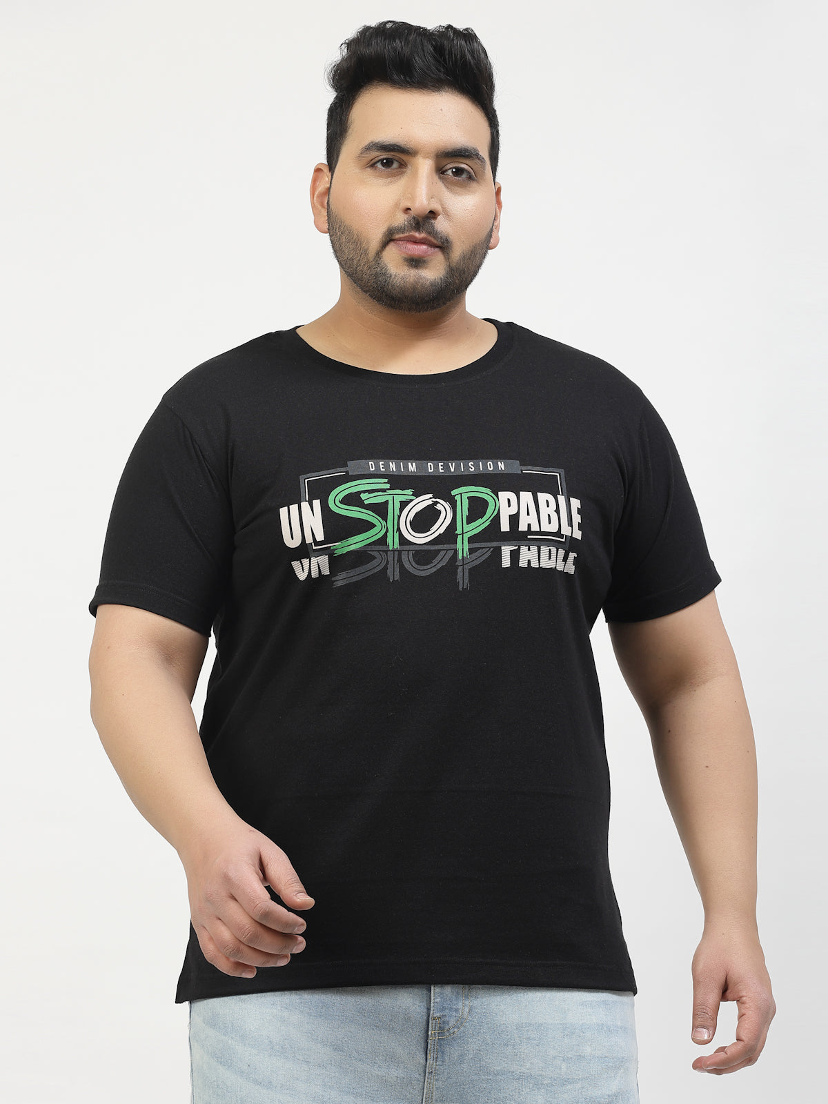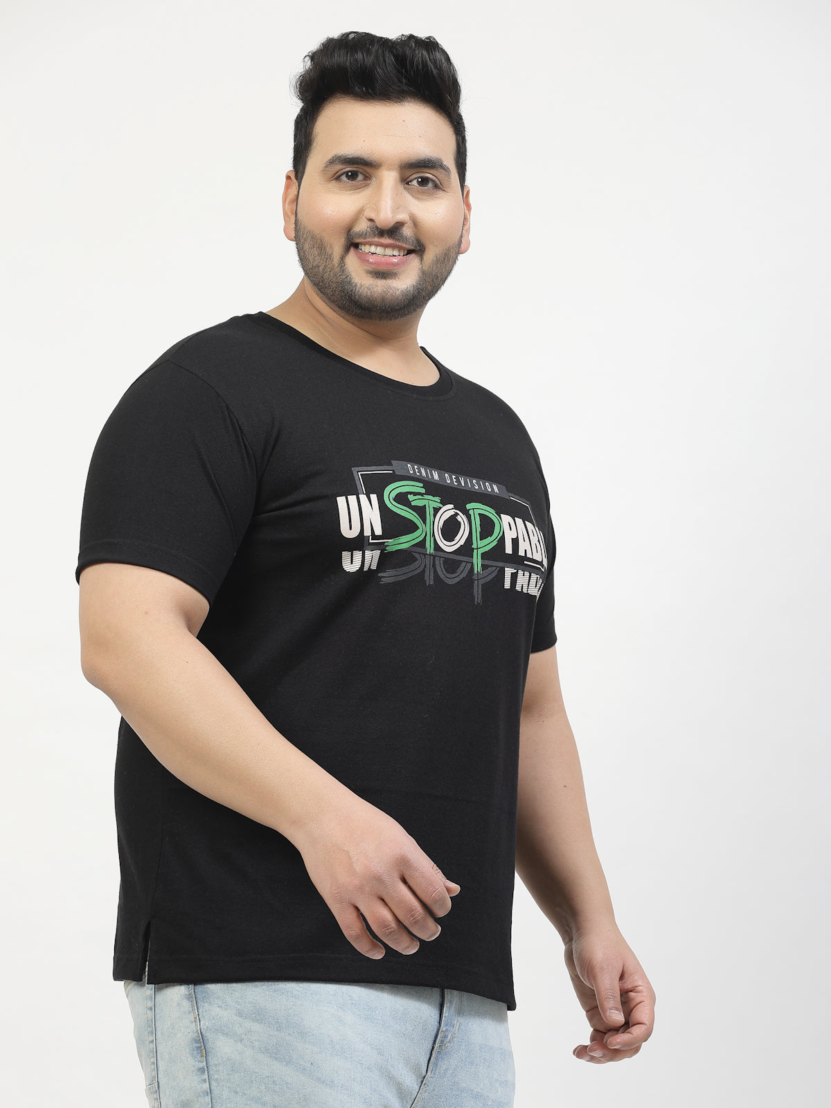 Plus Size Typography Printed Round Neck Short Sleeves Cotton T-shirt
