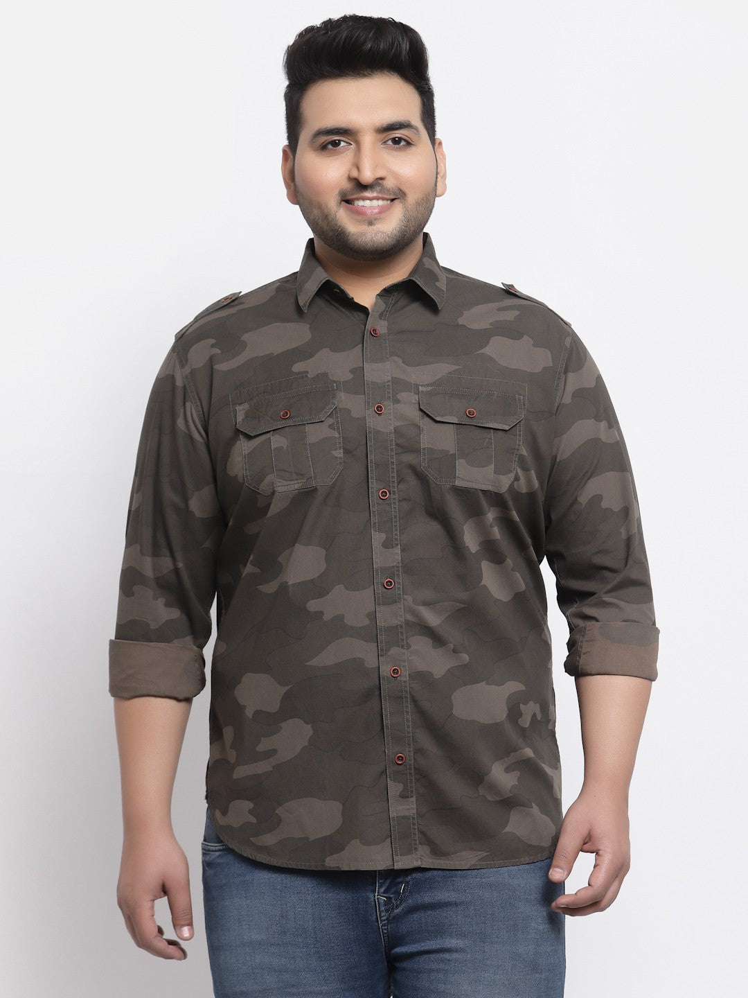 Plus Size Men Brown Camouflage Printed Cotton Casual Shirt