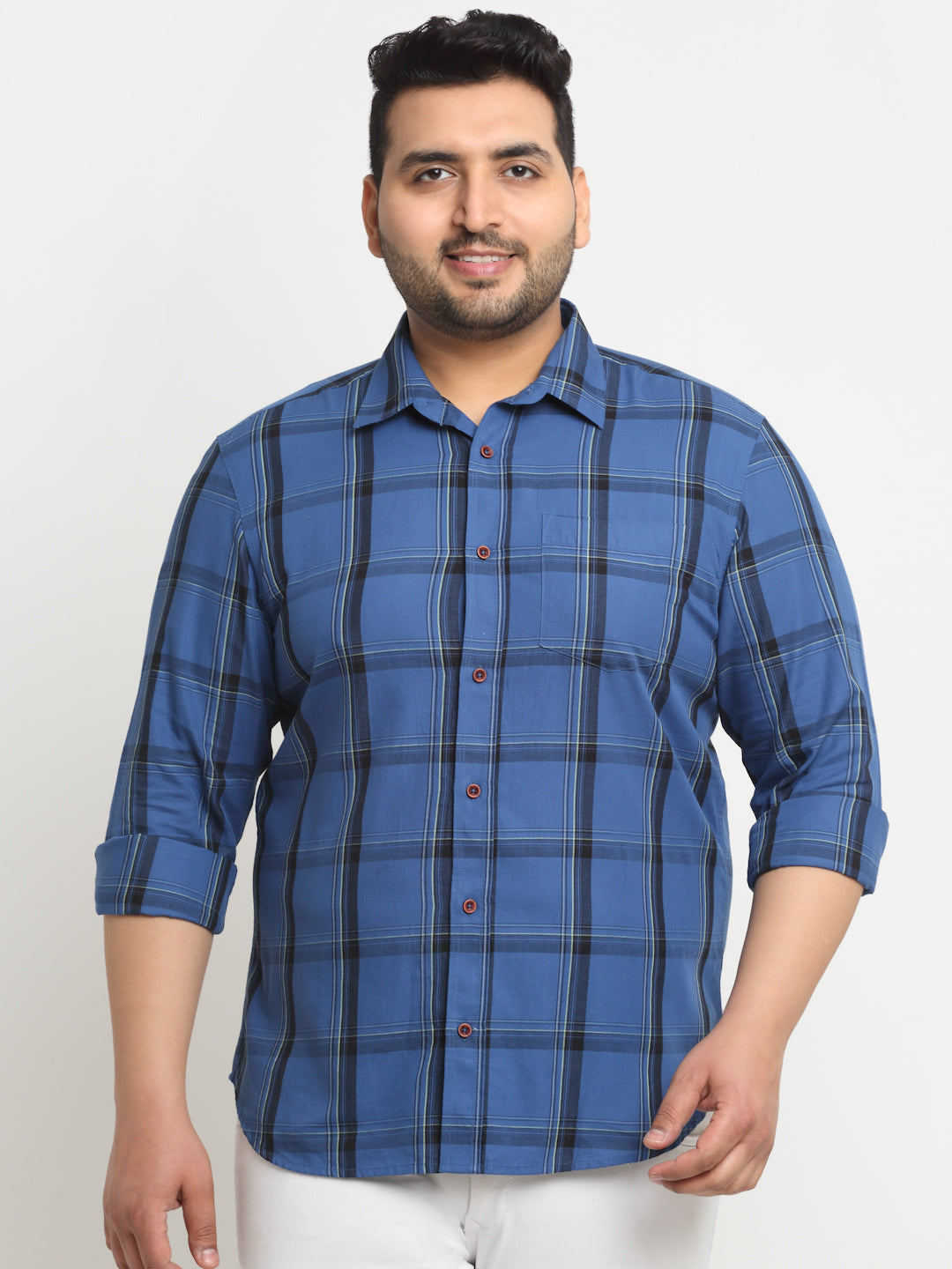 Plus Size Men Tartan Checked Casual Cotton Shirt