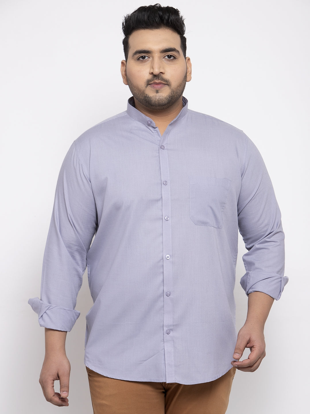 Plus Size Men Purple Casual Cotton Shirt