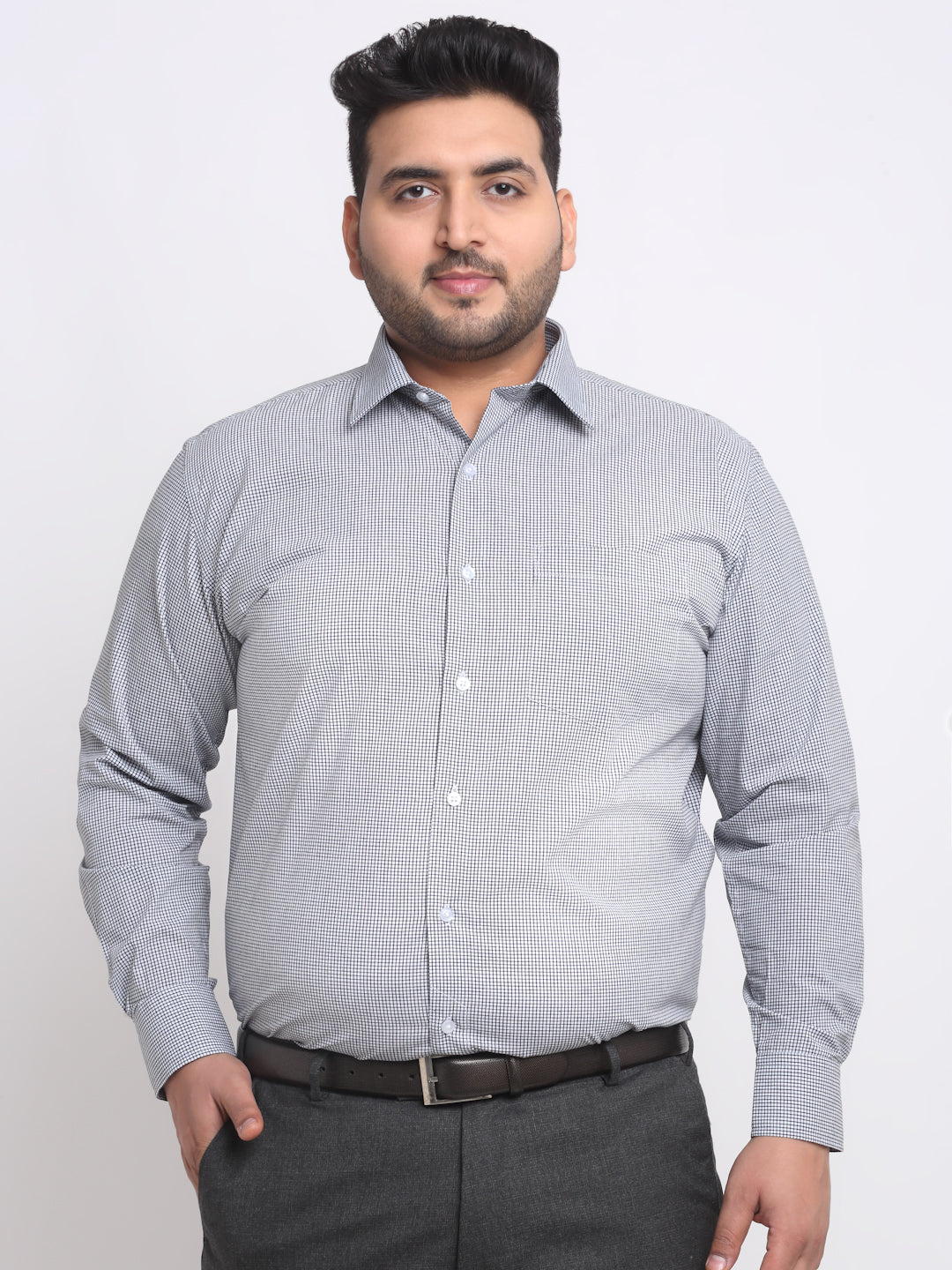Plus Size Black Micro Checked Opaque Casual Shirt