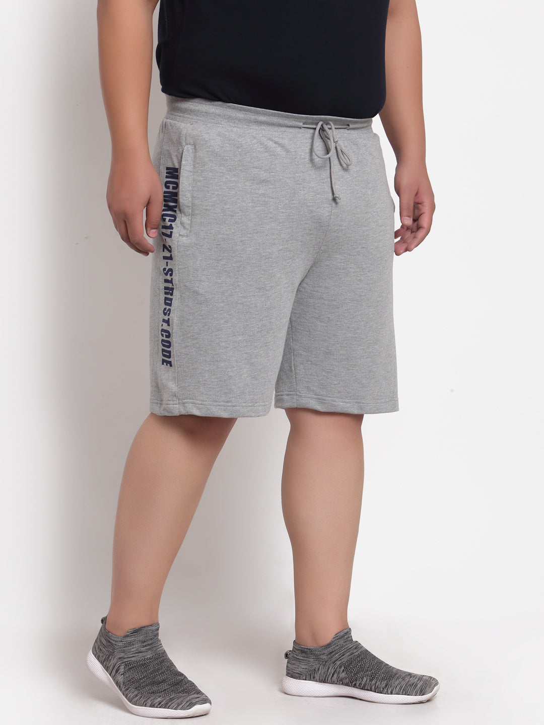 Plus Size Men Grey Printed Regular Shorts