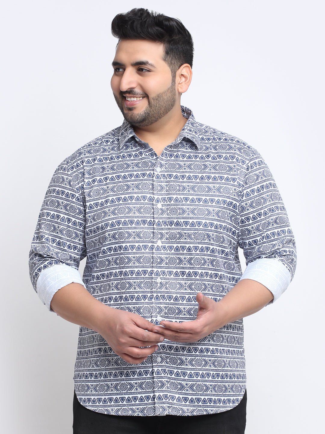 Plus Size Men Navy Blue Regular Fit Solid Casual Shirt