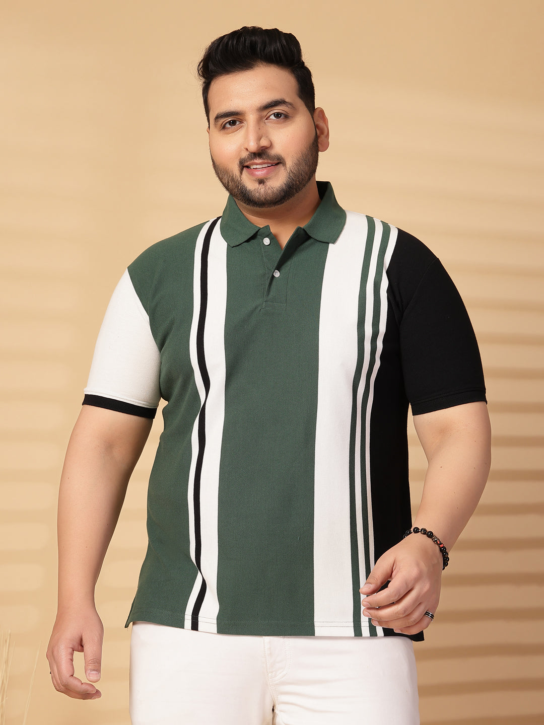 Plus Size Men Striped Polo Collar Cotton T-shirt