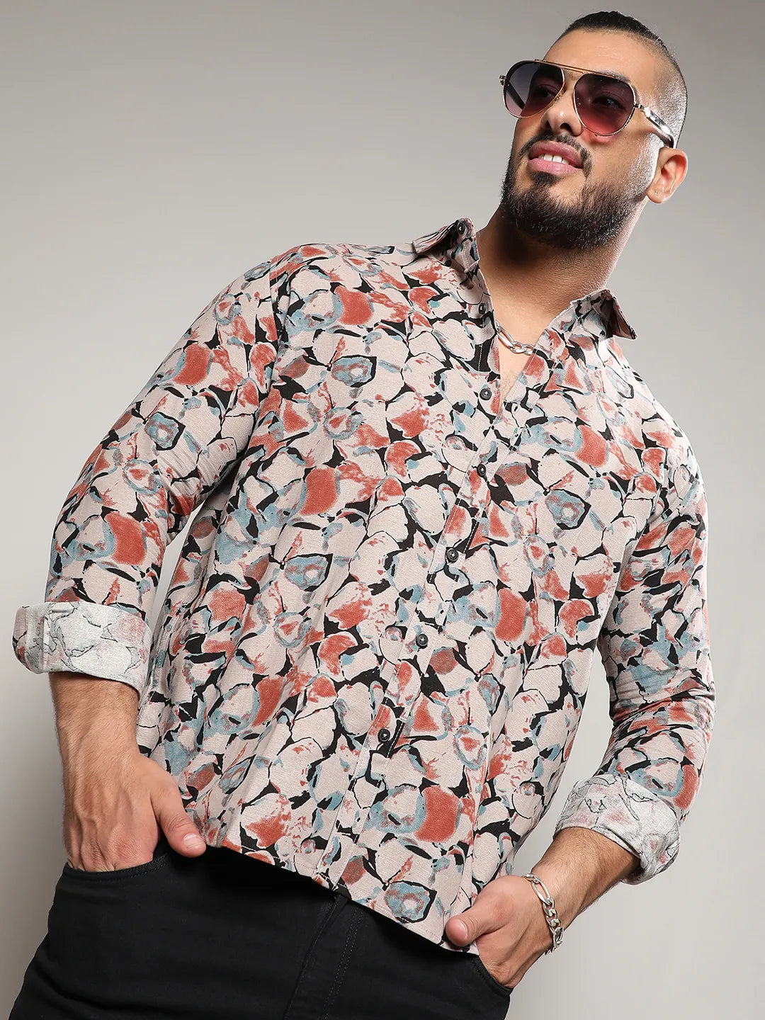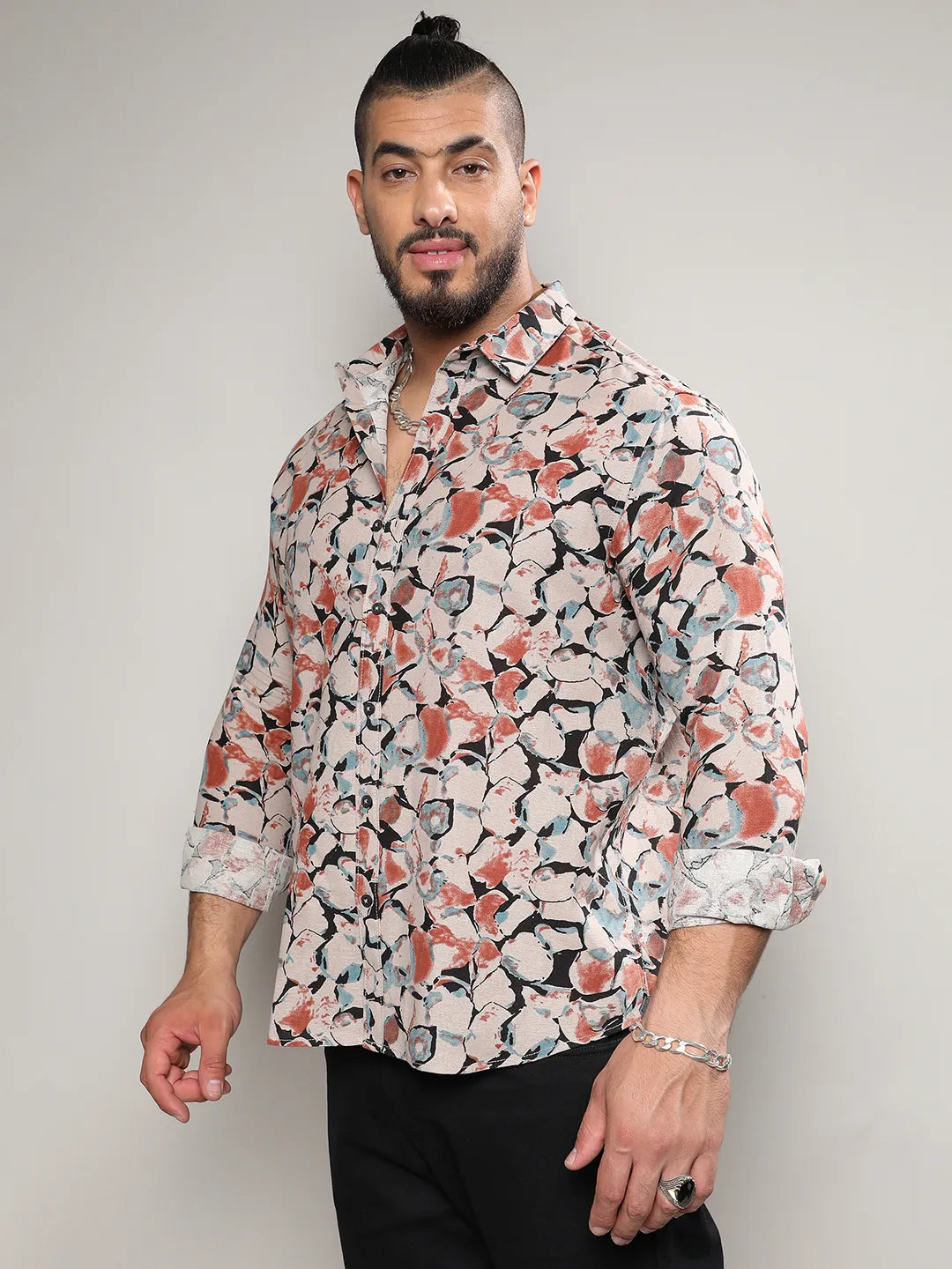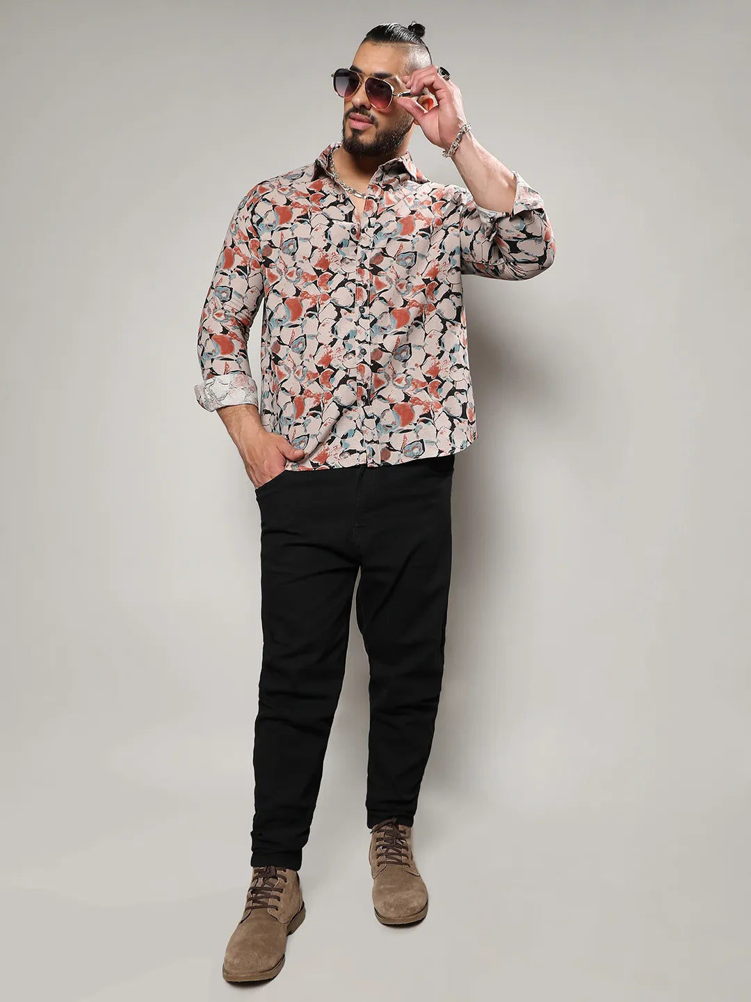 Beige & Brown Artistic Floral Cluster Shirt – Parfait Pluss