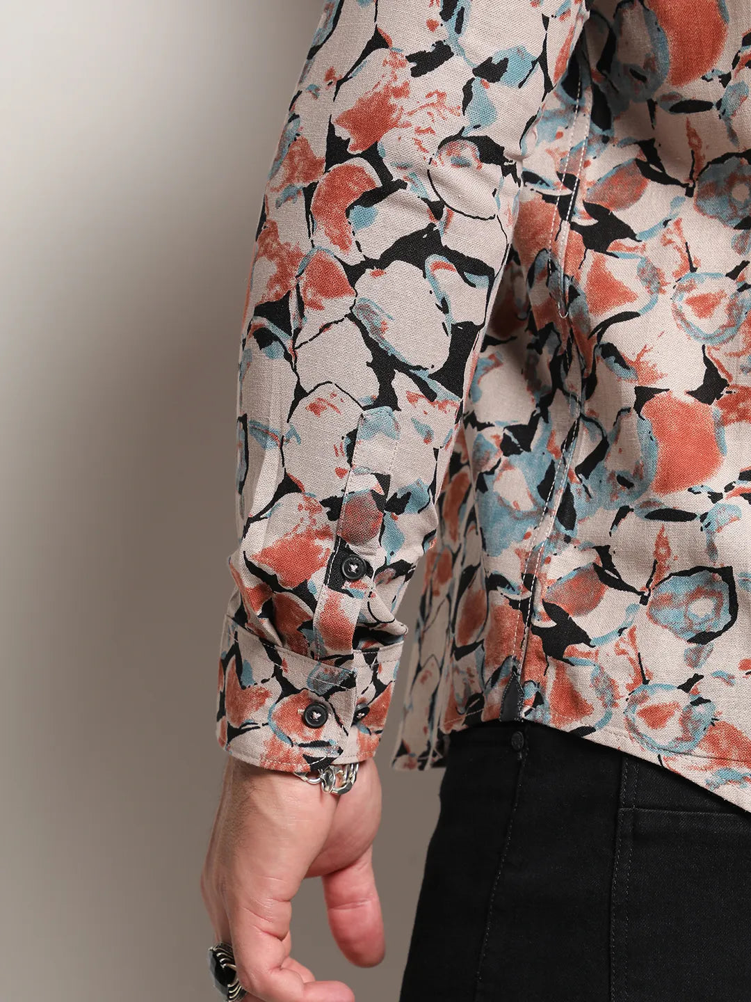Beige & Brown Artistic Floral Cluster Shirt