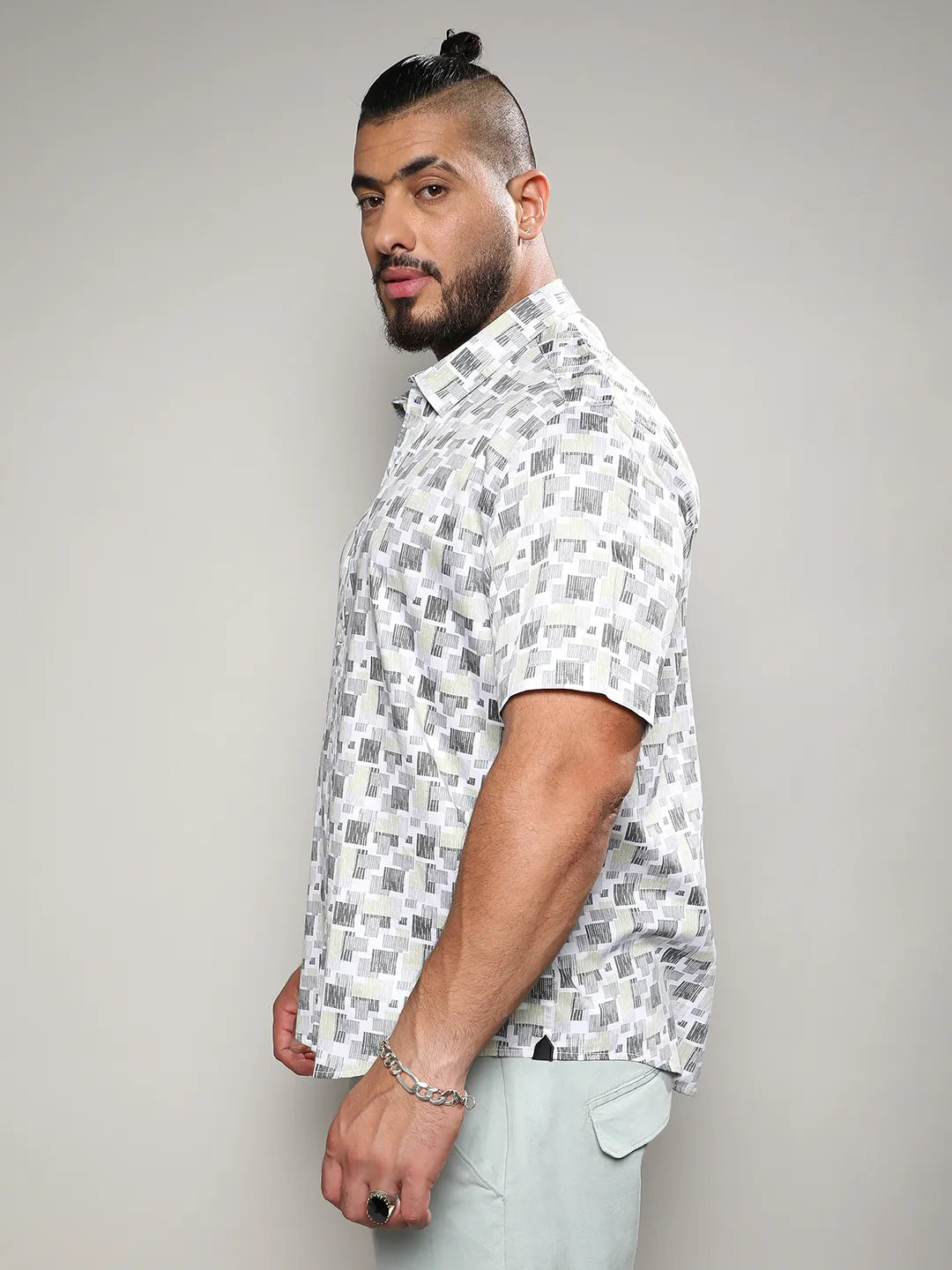 Beige & Grey Abstract Geometric Shirt – Parfait Pluss