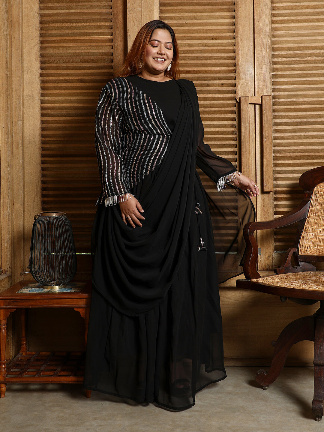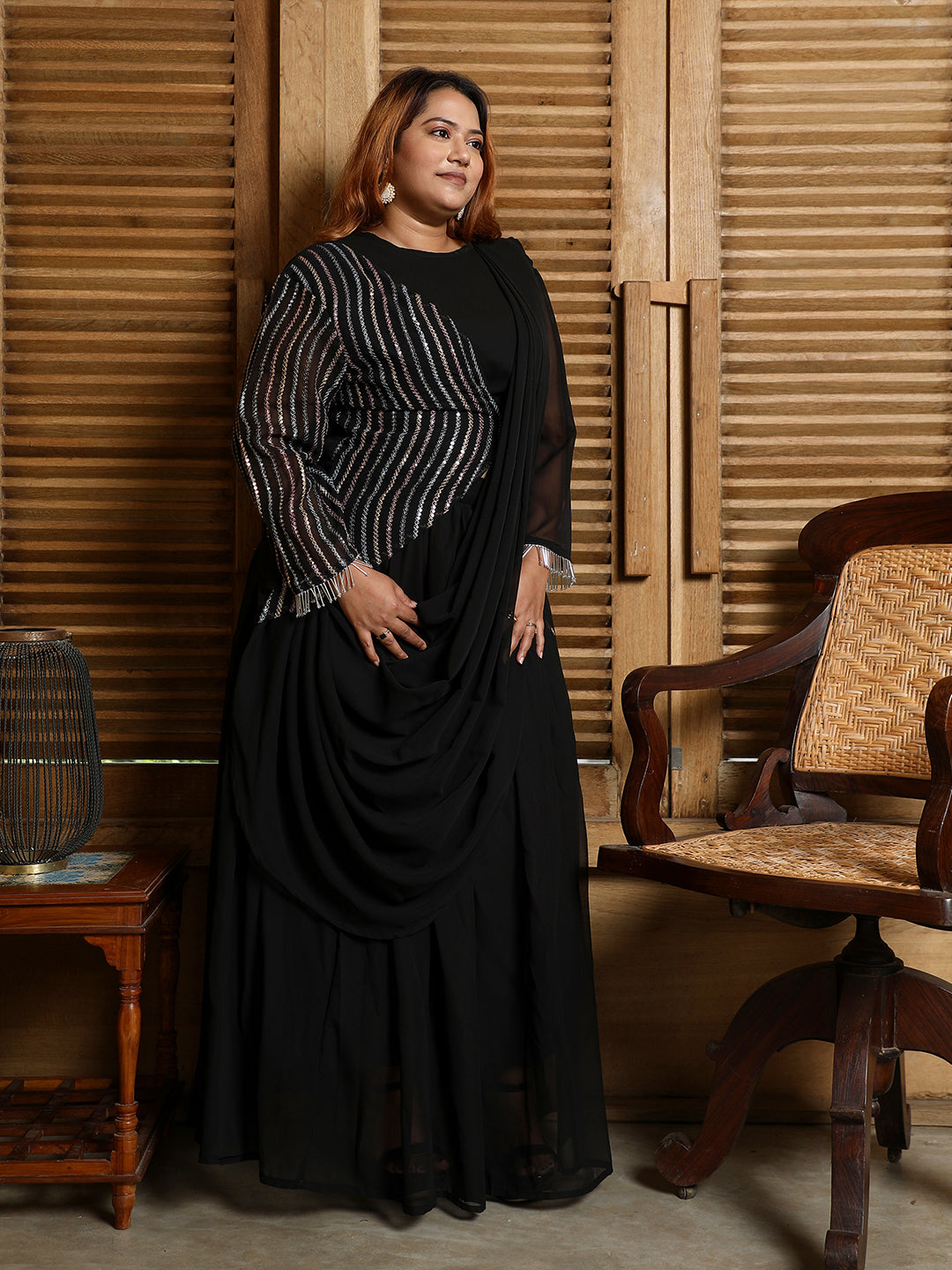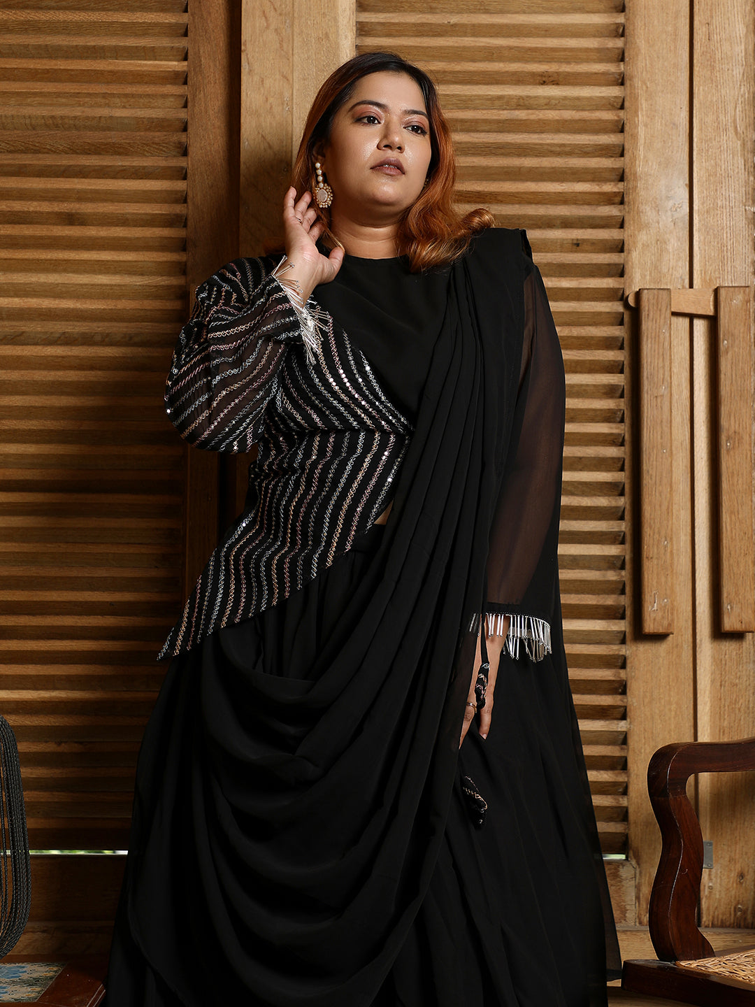Embellished Lined Pre-Draped Saree – Parfait Pluss