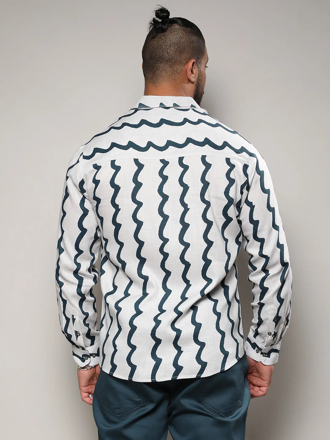 White & Navy Blue Contrast Paint Lines Shirt – Parfait Pluss